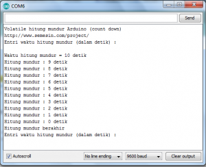 Serial.println("Entri waktu hitung mundur (dalam detik) :");