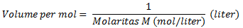 Untuk mendapatkan volume setiap molnya dari tabel molaritas senyawa digunakan rumus :