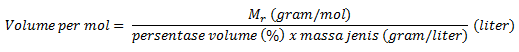 dengan formula volume per mol dari persen tersebut diperoleh: