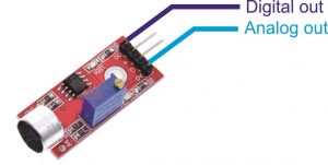 Sensor suara KY-037 pcb merah dan pcb biru memiliki perbedaan pada pin analog out.