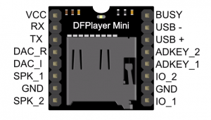 Mini Mp3 TF Player banyak disukai karena murah dan mudah dalam operasionalnya, mampu menggerakkan speaker 0.5Watt, dan menggunakan protokol Serial frame. Data suara disimpan dalam format MP3 / WAV dalam microSD.