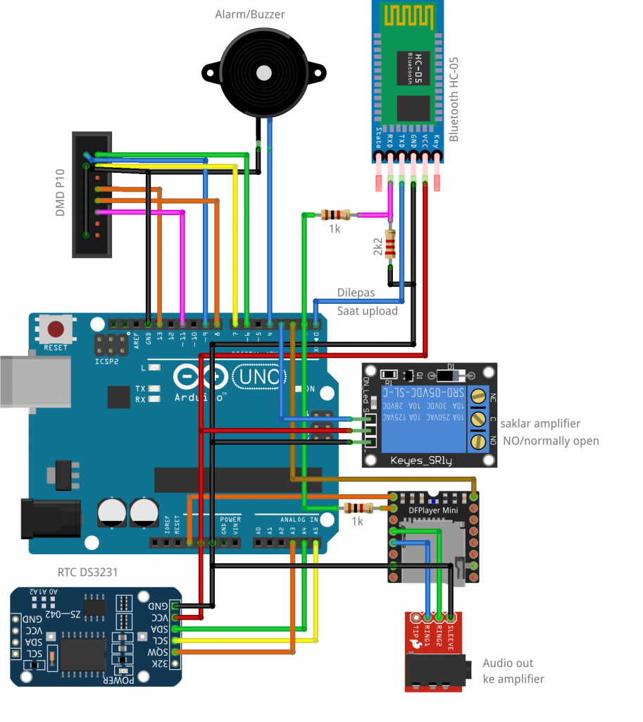 Pada modul suara sudah disimpan dalam memorinya (microSD) berbagai macam kemungkinan suara angka dengan urutan tertentu. Arduino berfungsi sebagai pengatur suara angka yang akan diputar.
