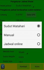 7. Perhitungan jadwal berdasarkan posisi matahari, masukan manual, data jadwal online harian.