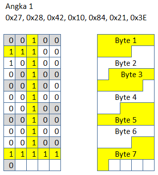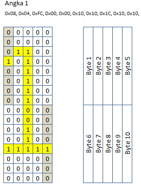 Font yang dikembangkan oleh adafruit dalam GFX menggunakan metode mendatar seperti diagram berikut :